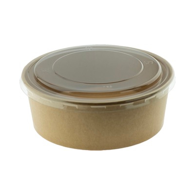 Brown Kraft Round Container with Clear Lid 1500ml